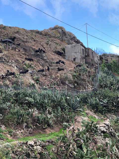 After walking round the Pico del Ingles, we drove up to the real start of the hike; it began with goats and a narrow, winding well trodden path up the side of a hill. The dry and arid climate with cactus spread across the route, reminded me of running through Death Valley during the Speed Project earlier this year – except with slightly more greenery I suppose.