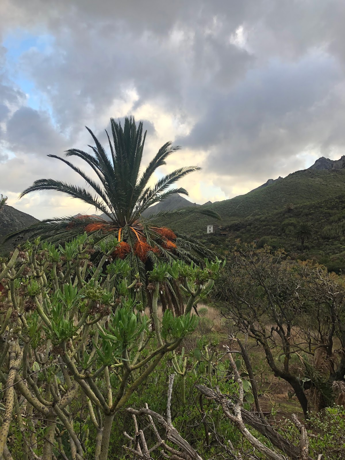 And lo, behold, after peeling our way through some ginoromous plants, we found it. Apparently, this is the largest number of palm trees in one area in Tenerife. With the mis hanging over the tops of the mountain ranges in the back, and these exotic looking palm trees in the front, I wouldn’t have thought this was Tenerife. But it was. Absolutely magnificent.