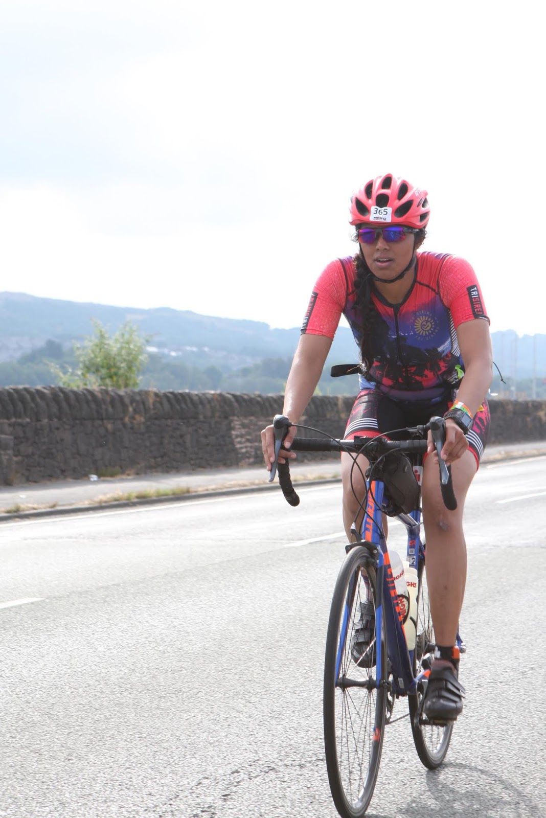 The aim was to cycle the first few miles up to the beginning of the multi-lap slowly, getting my legs used to the pedalling after the swim. All was fine. The crowds were out. I was actually doing this. It felt surreal. I felt high. The route had been changed from 112 miles to 95 miles because of the Moors fires affecting parts of the course. This had meant the first of the two major hills had been taken out.