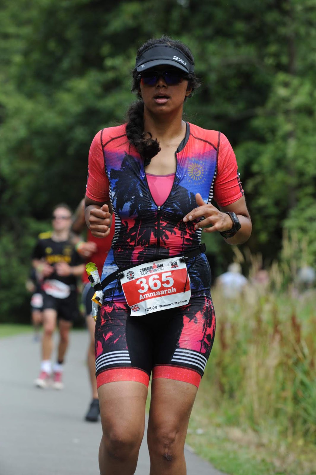 As I finally got to T2, I could see lots of people were already out on the run. The path down Chorley New Road towards T2 was never ending. This didn’t feel like the best of set ups. The path was very narrow with the multilap run course on the left. If there were lot of athletes on their bikes going down that path at the sam time, it would have been very hard to overtake. And it felt never ending. Oh my god, every time I saw a right turn, I thought yes, time to get off the bike and run. But no, no, no, it was many more metres to go. Ironman playing games with your mind right there. When T2 came, I racked my bike and ran as fast as I could, to take my shoes off, and put my trainers on. The sun was in full force now, so I sprayed sunscreen on my arms and face, running onto the course whilst rubbing it in. The run was pure carnage. I’d never seen anything like it. People were hobbling. People were throwing up. People were walking. People were farting (and probably praying they wouldn’t need imodium). People were just about jogging.